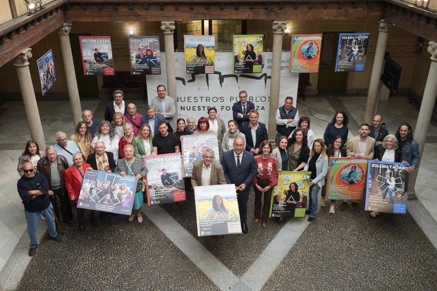 El Patio de Columnas del Palacio Provincial ha sido hoy testigo de la presentación de una nueva entrega de la campaña institucional de la Diputación de Segovia, ‘Nuestros Pueblos, Nuestra Fortaleza’, en la que se han descubierto seis nuevos protagonistas, cuyas historias dan sentido a la vida en la provincia. El presidente de la institución provincial, Miguel Ángel de Vicente ha sido el encargado de ir desgranando cada una de esas experiencias, que se suman a las de los protagonistas de las cuatro entregas anteriores.